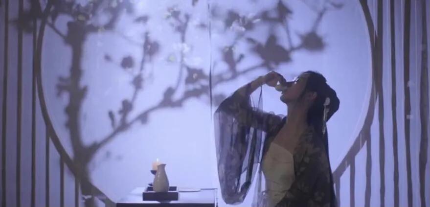 译文:夜灯前,自己一个人独自唱歌、独自喝酒、独自沉吟、独自大笑。