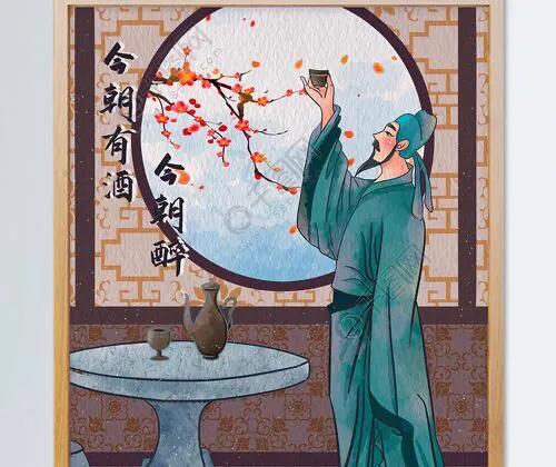 译文:今天有酒就喝个酩酊大醉,明天有愁就明天再愁。